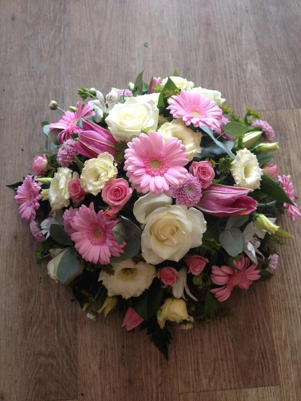 one of our most popular posy tributes. using gerbera and roses combined with seasonal blooms and foliages, classic and pretty.